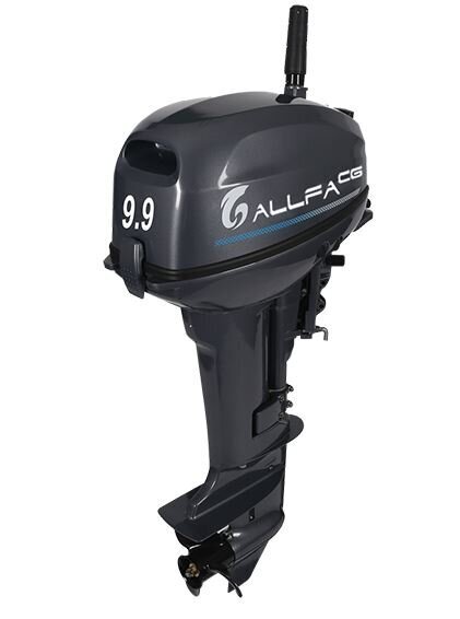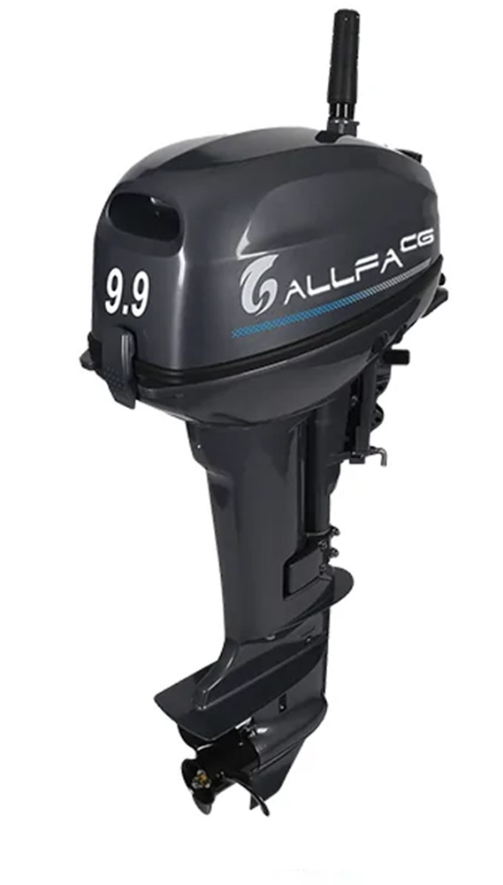 Лодочный мотор ALLFA CG Т9,9 – двухтактный, двухцилиндровый мотор. Работает на топливной смеси бензина и масла (50:1). Аналог модели: Yamaha. Мотор оснащен внешним топливным баком (24л.) и топливным шлангом, чекой безопасности, обязательно ремкомплектом.