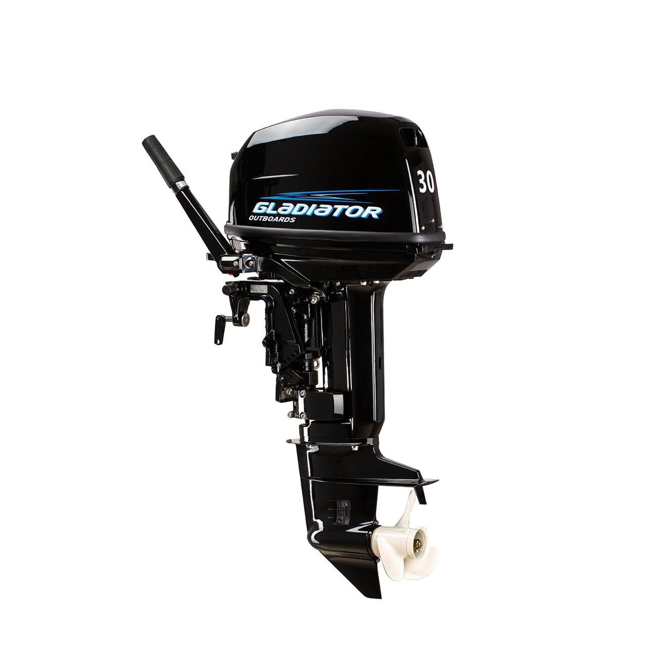 Лодочный мотор Gladiator 30 FHS — это двухтактный двухцилиндровый мотор мощностью 30 л.с. Он устанавливается на надувные лодки с размером транца S, 381 мм. Удобная система крепления позволяет устанавливать и снимать его всего за несколько минут. Gladiator 30 FHS имеет 2 тактную конструкцию, что делает его надежными, а обслуживание и ремонт простым. Также эти моторы имеют невысокие требования к качеству топлива. Управление осуществляется с румпеля, есть три передачи (вперед, назад и нейтраль) для удобного маневрирования. Отличительной особенностью Gladiator 30 FES от FHS являются два вида запуска — ручной и автоматический кнопкой электростартера, что обеспечивает динамичный разгон и движение на высокой скорости. В базовое оснащение этой модели входит все необходимое (набор инструментов, крепеж для винта и запасная свеча) для безопасного и комфортного плавания не только на мелководье, но и на отдаленных от берега участках.