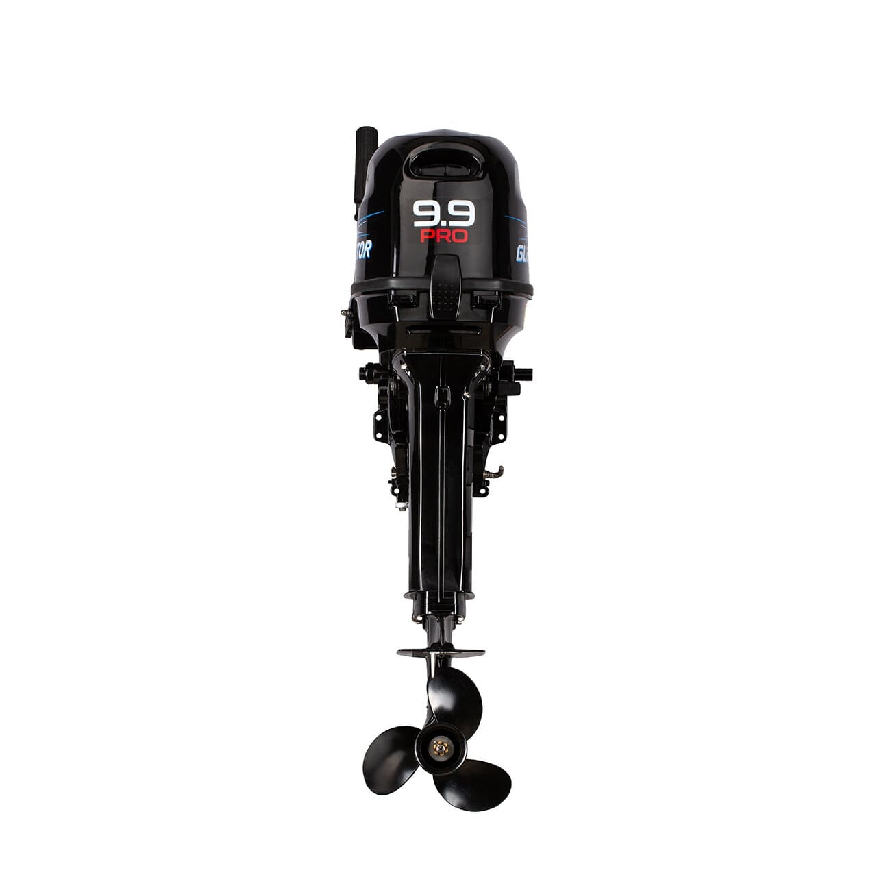 Лодочный мотор Gladiator G9.9 PRO FHS - двухтактный двухцилиндровый подвесной двигатель мощностью 9.9 л.с. и рабочим объемом 324 см3. Данная модель оснащена внешним топливным баком на 24 литра. Средний расход топлива - 7.3 л/ч. В качестве топлива производитель рекомендует использовать АИ92, а масло выбирать в соответствии со стандартом TC-W3. Двигатель запускается ручным стартером, управляется стандартным румпелем с поворотной ручкой газа с анти-проскальзывающими насечками. На румпеле установлена кнопка остановки мотора, оснащенная предохранительной чекой экстренного выключения.