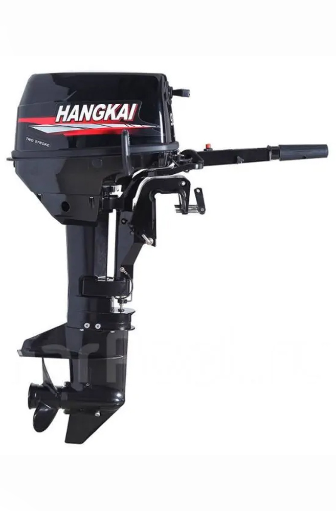 - Двухтактный лодочный мотор Hangkai M9.8 HP имеет румпельное управление (ручка газа на румпеле).