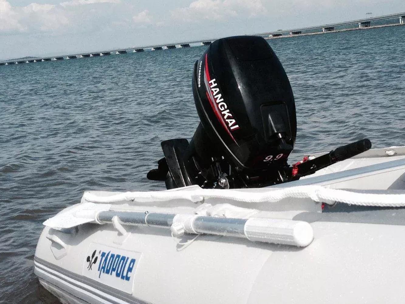 Возможна замена оборотов этим самым провести разогрев более качественно. Подвесной мотор ханкай 9.9 оснащен топливным баком на 24 литра в стандарте этого хватает на 6-9 часов прогулки по воде. Рекомендуется заправлять мотор смесью 92 бензина и неэтилированным моторным маслом. встроенного бака нет. Система для смазки двигателя идет в соотношении 1:20-50. сухой вес мотора составляет 37 кг. и масса брутто 43 кг.