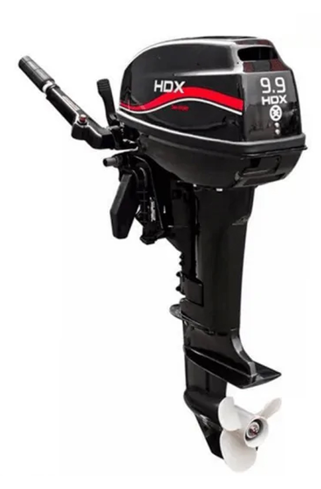 Двухцилиндровый лодочный мотор HDX T 9,9 BMS среднего класса. Обладая мощностью 9,9л.с., агрегат весит всего 36 кг. Выносной бак рассчитан на 12 литров топлива. Подвесные моторы HDX T 9,9 BMS запускаются вручную, управляются румпелем. Подвесной мотор HDX T 9.9 прост по конструкции, поэтому нетребователен в обслуживании и комфортен в эксплуатации.