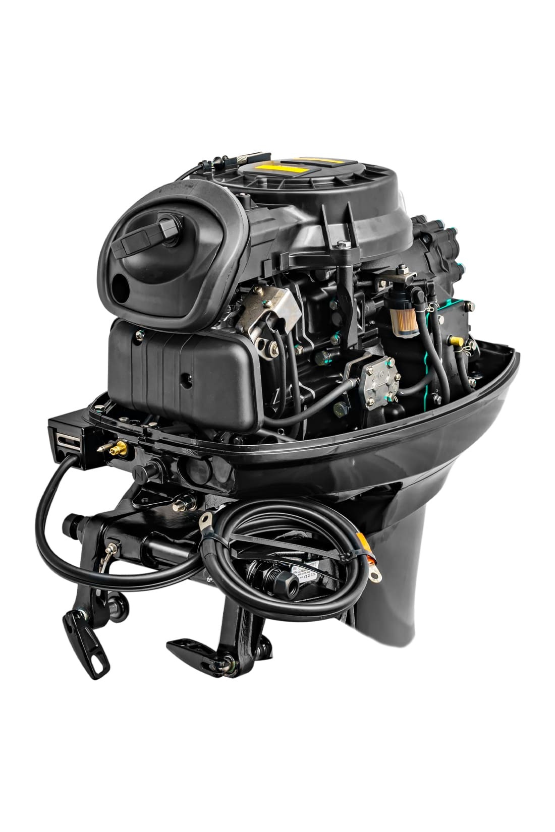 Двигатель поставляется с рулевым колесом, рулевым редуктором и тягой, рулевым тросом М66 3,8 метра (13FT), тросами газа/реверса C-2 3,8 метра (13FT), контроллер газа реверса 703 (7pin) с возможностью управления электроподсосом с замка зажигания, реле зарядки АКБ, чекой безопасности и запасной крыльчаткой охлаждения.