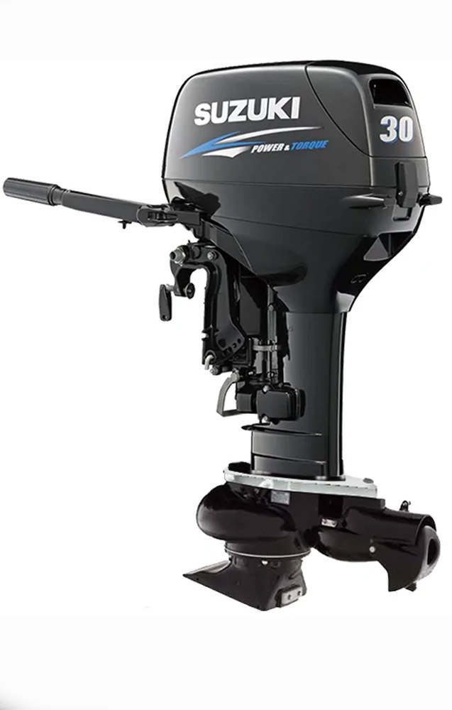 Подвесной мотор Suzuki DT30 с румпельным управлением и водометной насадкой.