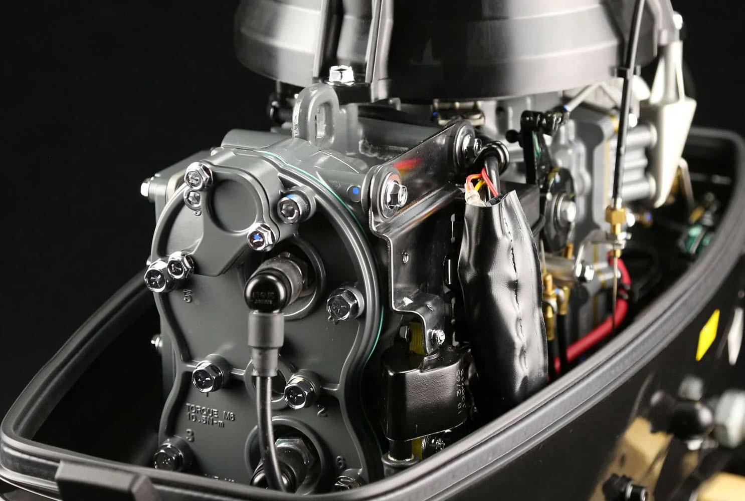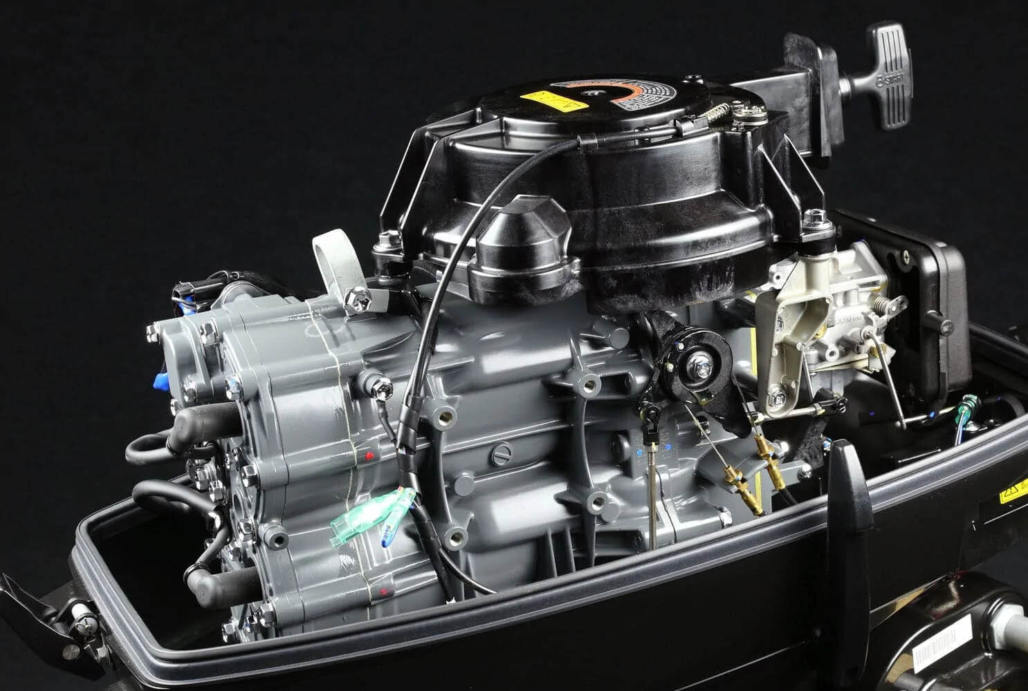Куполообразная форма поршней способствует лучшему сгоранию топлива, поэтому повышается мощность и общая производительность мотора. Этот мотор оборудован системой водяного охлаждения с двумя водозаборными отверстиями, что обеспечивает стабильную охлаждение в любых режимах работы. Встроенный ограничитель максимальных оборотов защищает двигатель от износа и повреждений.