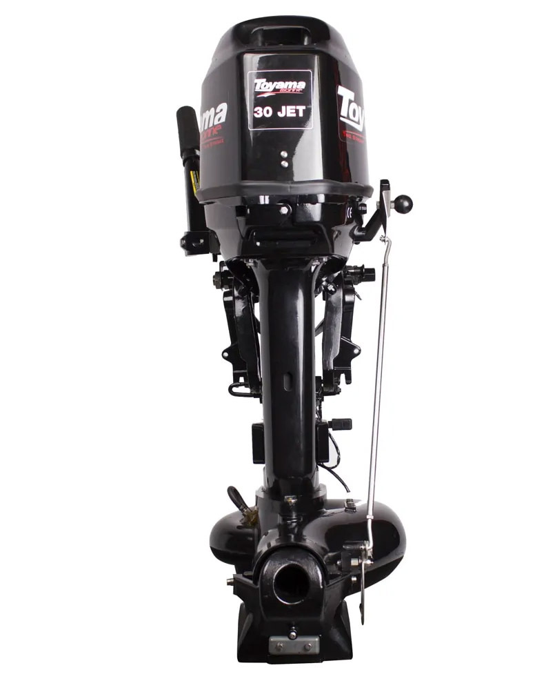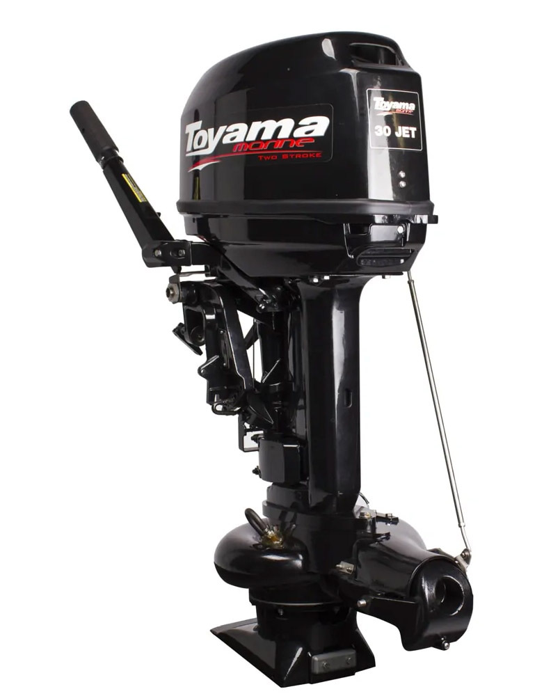 Toyama T30ABM JET – лодочный мотор известного завода Парсун - имеет ручной запуск и румпельное управление. Данная модель весит 63 кг. При этом, рабочий объем двухтактного силового агрегата составляет 496 куб. см. Электронная система зажигания обеспечивает минимальный уровень потребления топлива.