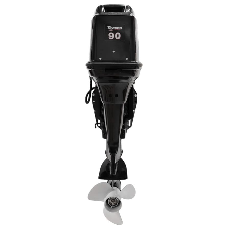Один из самых мощных моделей среди двухтактных подвесных моторов Parsun Двухтактный мотор Toyama T90FEL-Tпроизводится cогласно самых высоких стандартов и требований. Двигатель развивает мощность до 90 л.с. двигатель интересен владельцам катеров, рибов, любителям туризма в виде основной движущей силы для плотов, понтонов и др.. Двигатель оборудован современной электронной системой зажигания CDI. В целях безопасности мотор дополнительно оборудован кнопкой с чекой аварийной остановки которая глушит двигатель при размыкании цепи. Но все же главной особенностью данной модели моторов является система электрического запуска. Высота транца в данной модели моторв - 508 мм на транце двигатель крепится с помощью крепежных болтов. Мотор комплектуется внешним, переносным топливным баком объемом 24 л. Также мотор оборудован передачами нейтраль-вперед-назад.