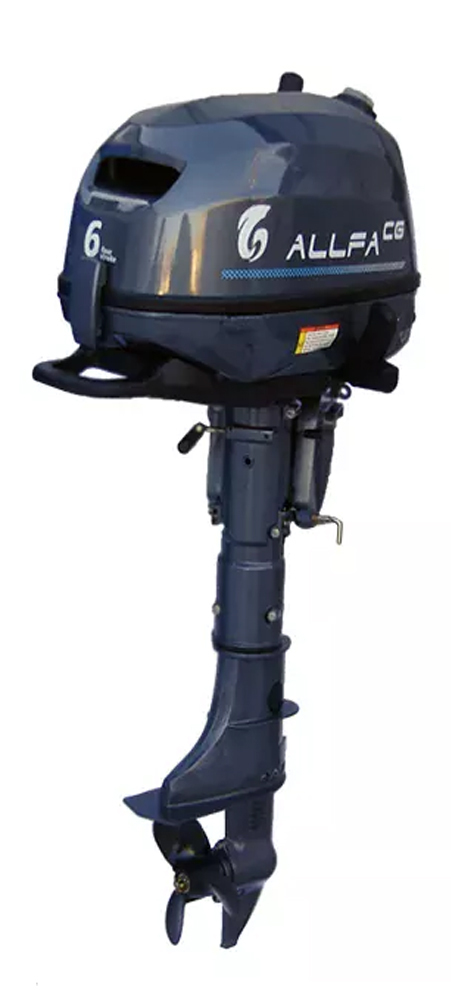 Лодочный мотор Allfa CG F6 - фабричный китайский двигатель, произведенный на заводе Calon Gloria. Этот четырехтактный силовой агрегат с массой в 27 кг. способен выдавать мощность в 6 лошадиных сил. Отличительной особенностью данного мотора является то, что это мотор непроливашка. Таким образом, его можно перевозить на любом боку, устанавливаться на транцы с высотой 381 мм.