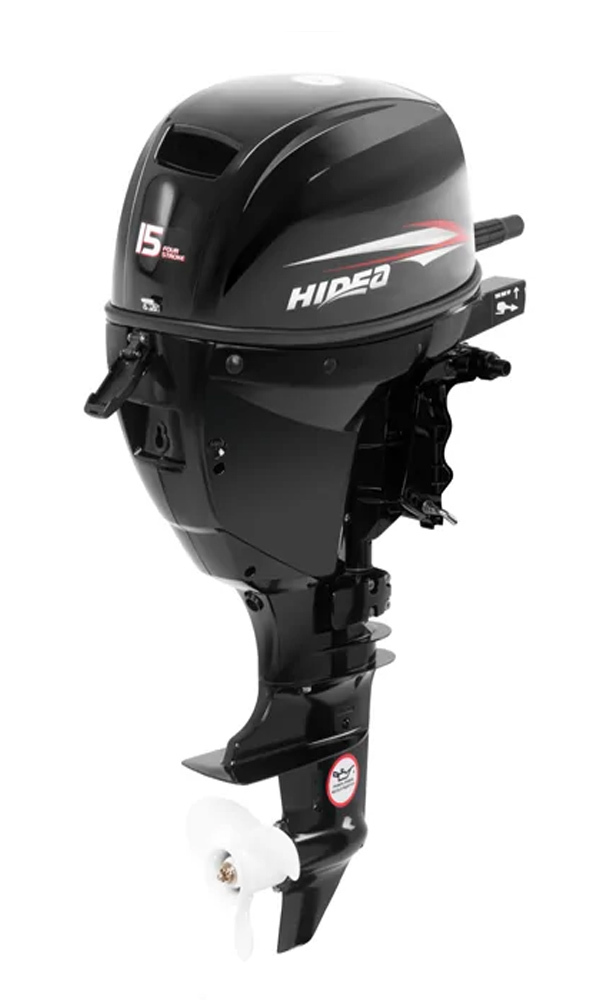 Четырехтактный лодочный мотор Hidea F 15 HP с ручным управлением и выносным топливным баком. Лодочный мотор оснащен дейдвудом стандартной длины. Мощности двигателя достаточно для уверенного вывода на глиссер небольшой лодки с четырьмя пассажирами на борту.