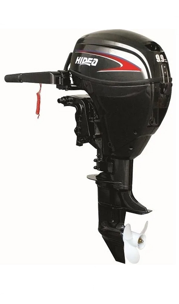 Лодочный мотор Hidea F 9.9 HP. Ручное управление, выносной топливный бак, дейдвуд стандартной длины. Мощности двигателя достаточно для вывода на глиссирование небольшой лодки с двумя пассажирами.