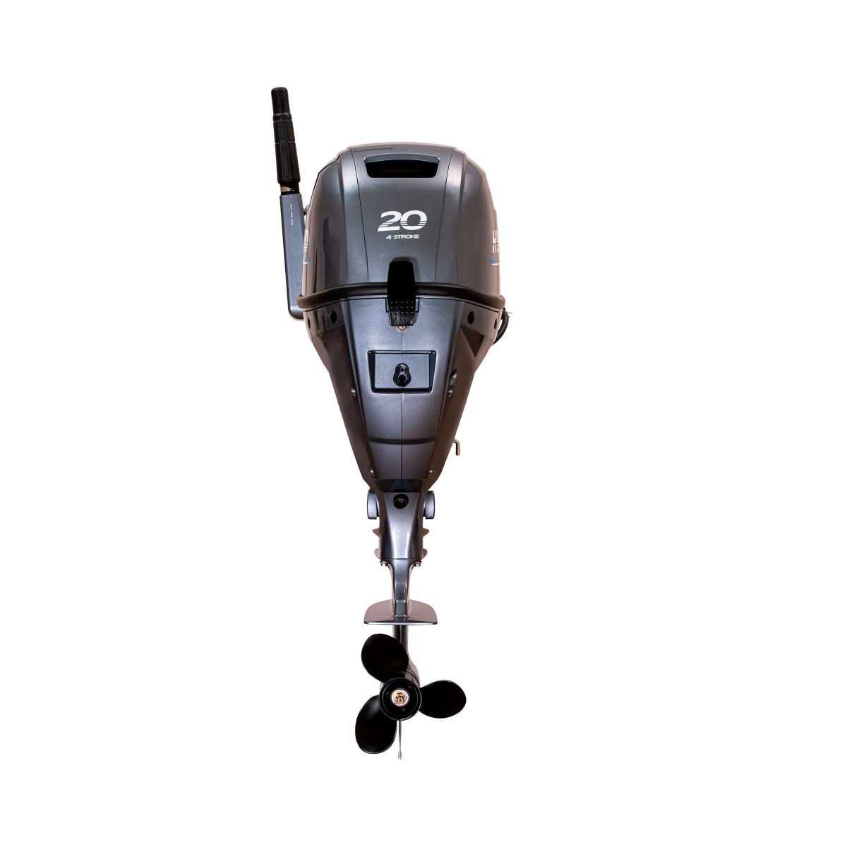 20-сильный мотор - отличный выбор для многих лодок. Расшифровка МТО: F - 4-тактный двигатель; E - электростартер; H - румпельное управление; B - литиевый аккумулятор в комплекте; S - короткий дейдвуд