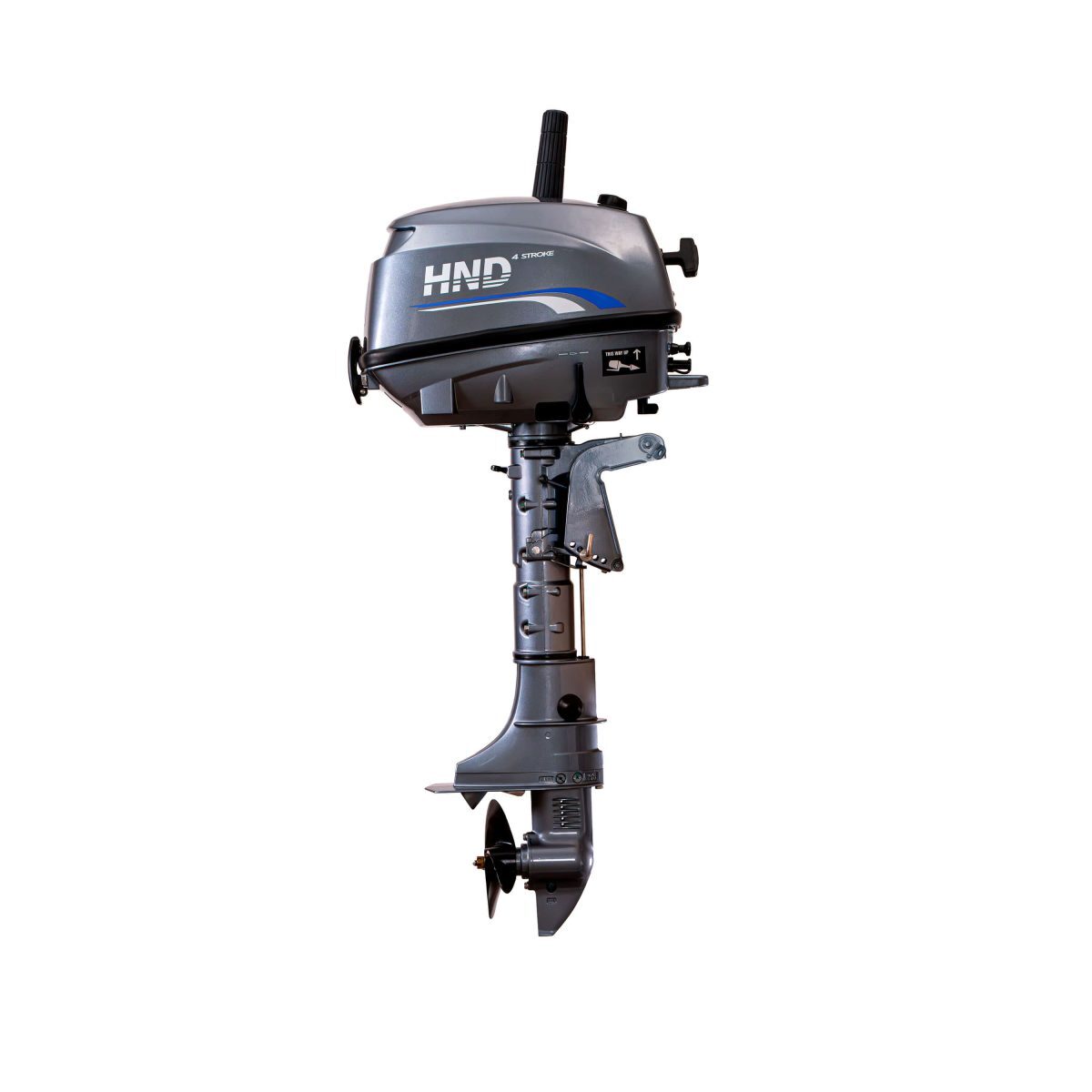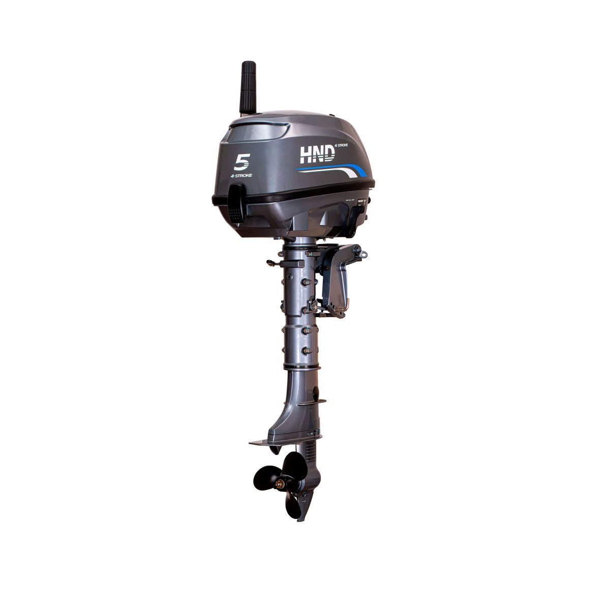 Представляем легкий и компактный 4-тактный подвесной лодочный мотор HND OB5 FHS номинальной мощности 5 лошадиных сил и рабочим объемом 112 см³. Расшифровка МТО: F - 4-тактный двигатель; H - румпельное управление; S - короткий дейдвуд. 5-сильный 4-тактный 1-цилиндровый двигатель отличается эффективным сгоранием топлива, снижая ваши расходы на бензин.
