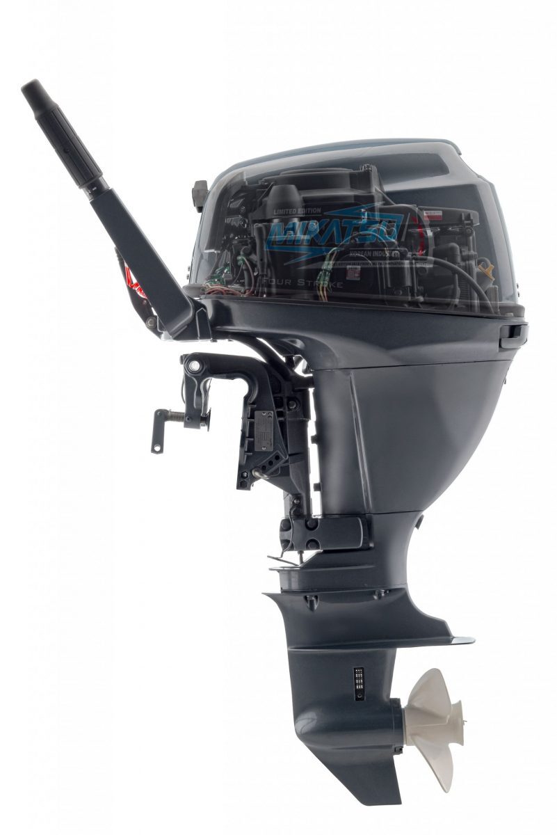 Подвесной лодочный мотор Mikatsu (Микатсу) MF15FHS отличный выбор для тех, кто хочет получить высокую мощность, но не желает переплачивать за высокий расход топлива. Он является полноценной аналогией японского двигателя Yamaha (Ямаха). Его 4-х тактный двухцилиндровый двигатель имеет мощность 15 л. с. При этом потребление топлива составляет всего 5,3 л на час работы. Достигается это благодаря использованию инновационной системы подачи топлива Mikatsu (Микатсу) и японских свечей зажигания NGK. Вес двигателя составляет 53,4 кг, он оборудован 3 передачами – передней, нейтральной и задней. В комплект поставки входят: фирменный внешний бак на 12 л, топливный шланг, набор инструментов и сервисный набор, иллюстрированное руководство на русском языке и сервисная книжка, подтверждающая десятилетнюю гарантию от производителя на данный мотор.