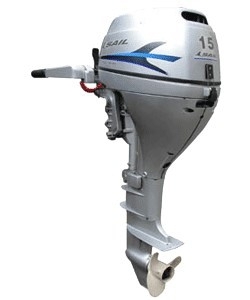 Четырехтактный подвесной лодочный мотор мощностью 15 лошадиных сил или 11 кВт с максимальными рабочими оборотами от 4500 до 5500 об/мин, водяной системой охлаждения и румпельной системой управления. Система зажигания CDI, передаточное соотношение редуктора 2.08 (27/13), высота транца 381 мм.