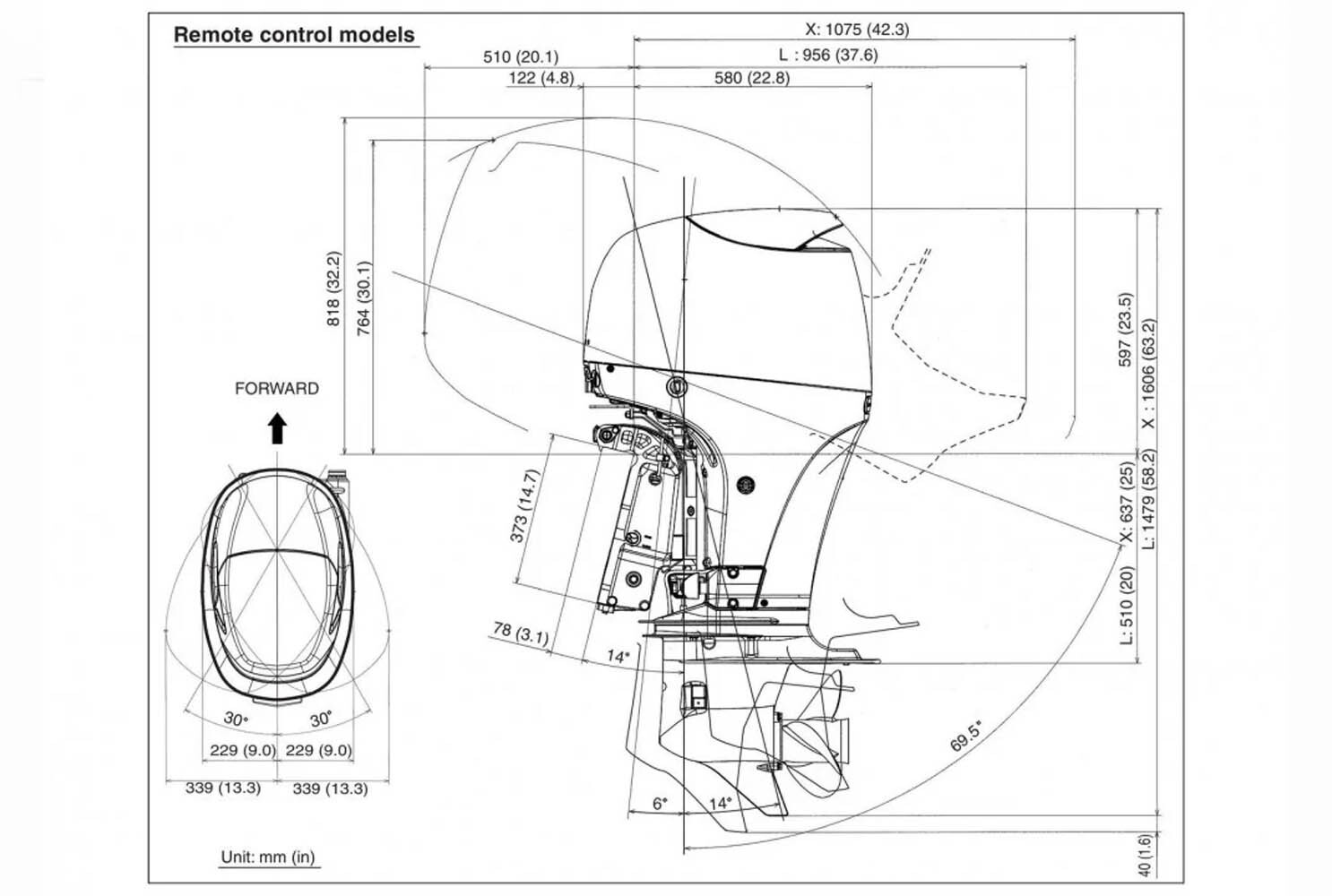 Данный мотор отличается низким уровнем шума. Также он оснащен ограничителем угла откидки, разработанным для того, чтобы защитить лодку от повреждений. Всеми процессами двигателя, как впрыск топлива, угол опережения зажигания, контроль температуры двигателя и окружающего воздуха, положение в передаче, управляет бортовой компьютер ЕСМ.