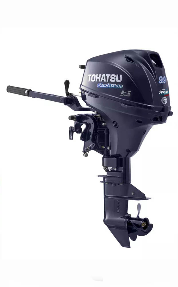 Tohatsu MFS 9.9 ES - четырёхтактный двухцилиндровый мотор мощностью 9,9 л.с. с румпельным управлением; тремя передачами нейтраль-вперёд-назад; цифровой системой зажигания (CD); ручным переводом в мелководный режим; внешним бензобаком на 12 л; рассчитанный на стандартную высоту транца 381 мм.