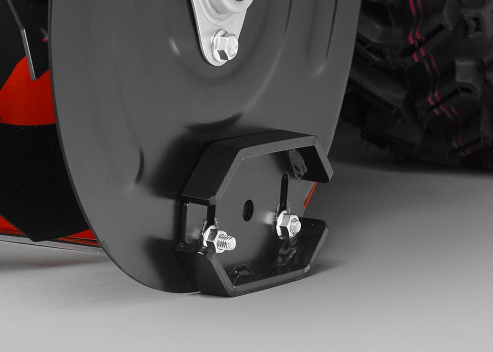 - Снегоуборочная машина имеет прочный металлический корпус и конструкцию, что делает ее более долговечной. Боковые панели закреплены с помощью заклепок, а нижняя часть панелей оснащена двусторонними башмаками. Вместе они усиливают корпус, обеспечивают плавное движение машины и служат защитой, продлевая срок службы.