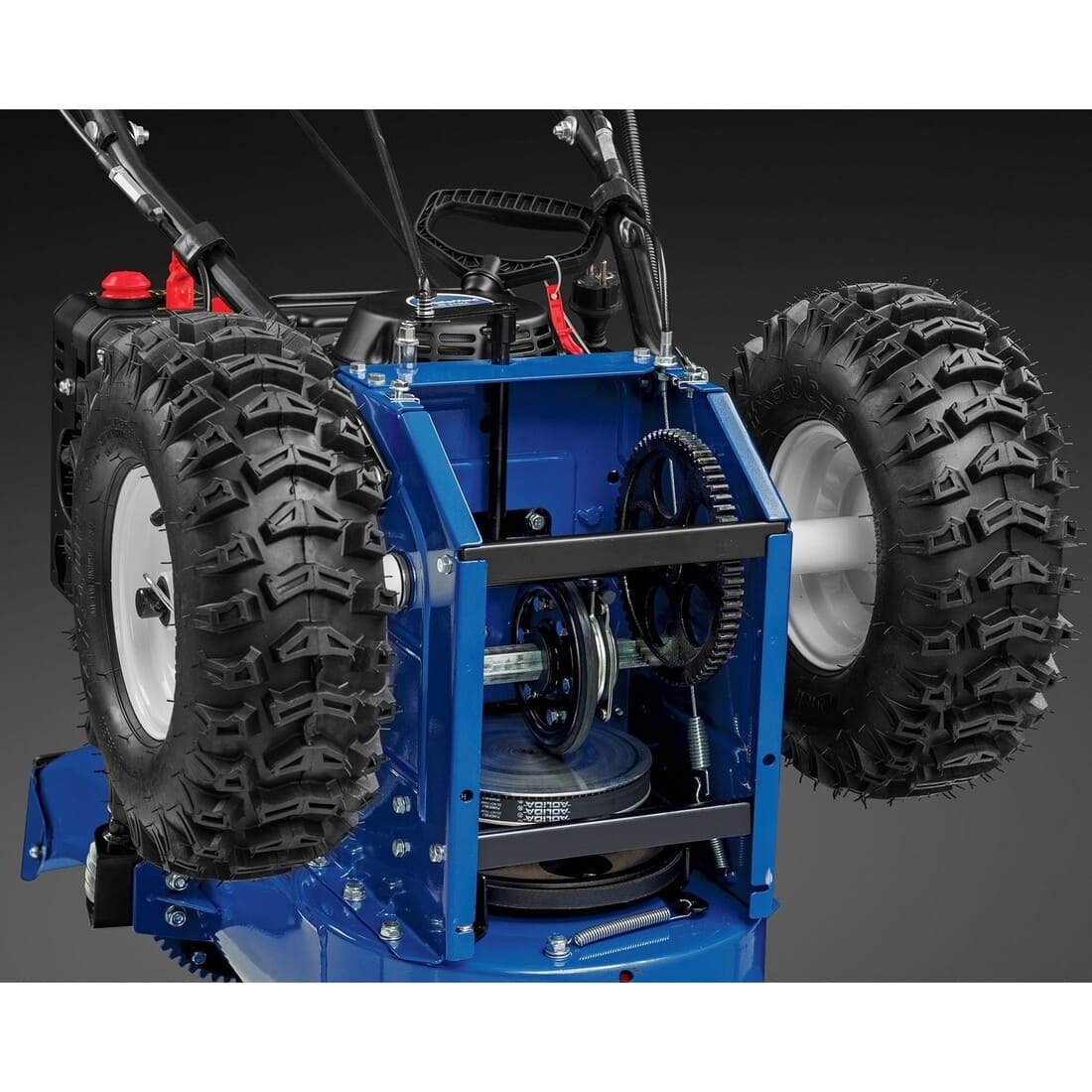 Данная модель снегоочистителя оснащена колесами с диаметром 35,5 см. Они позволяют машине производить минимальную пробуксовку и оснащают ее хорошим сцеплением с любой поверхностью - наклон или ледяная корочка. Благодаря 4 тактному двигателю MasterYard LC170 мощностью 6,5 л.с. и объемом 212 куб. см., а также стальному агрессивному шнеку (зубчатой формы) снегоуборочная техника способна эффективно убирать территорию даже с залежавшимся снегом! В этом еще способствует металлическая рама, которая обеспечивает дополнительно долговечность всей конструкции.