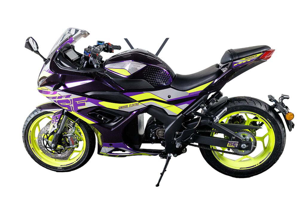 Электромотоцикл SE RR (5 кВт) — уникальная модель от производителя Simargl Elektro, сборка которого базируется на центральном цепном приводе. Кроме того, мотоцикл отличается спортивным дизайном благодаря агрессивным линиям и двигателем мощностью 5000 Вт, который способен за несколько секунд вывести вас на скорость до 120 км/ч! Основные преимущества электробайка SE RR: прочная рама и 23-дюймовые колеса; двойная подвеска; дисковые гидравлические тормоза; яркие фары. Также отличительной особенностью электрического мотоцикла является бесшумность и экологичность техники. Даже если вы новичок, вы сможете почувствовать себя профессионалом на таком мотоцикле! Причем транспорт не нуждается в постановке на учет в ГАИ. Однако, для вождения требуются права любой категории.