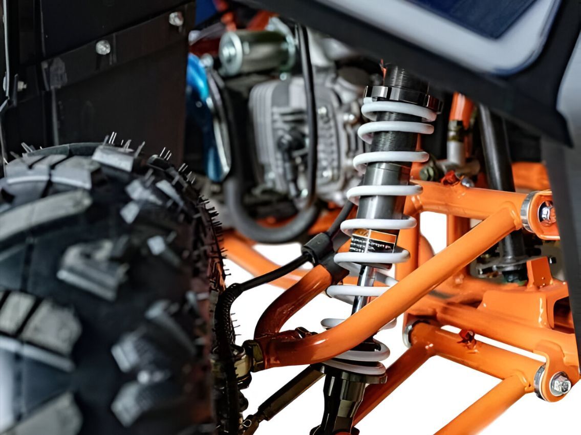 GLADIATOR G125 снабжен 8-дюймовыми шинами, независимой подвеской на шаровых опорах спереди и маятниковой подвеской с моноамортизатором сзади.