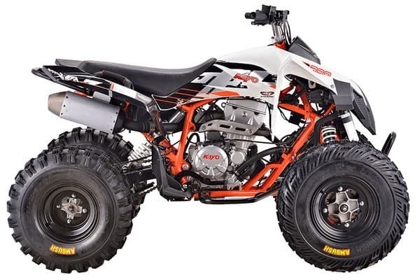 KAYO A300 - топовый представитель линейки квадроциклов китайского мотобренда. Этот спортивный аппарат отличают высокие показатели мощности и производительности, а также оптимальный баланс в подборе комплектующих высокого качества. Обновленная в 2022 году модель рассчитана на опытных ATV-райдеров и позволит получить максимум удовольствия от вождения в спортивном стиле. В мощной раме спортивного снаряда установлен одноцилиндровый 4-тактный двигатель LX178MN рабочим объемом 292см3 с системой жидкостного охлаждения, четырьмя клапанами в системе газораспределения и механической трансмиссией (реверс - нейтраль - далее передачи с первой по пятую). Оснащение квадроцикла новой инжекторной системой подготовки топлива позволило обеспечить быстрый отклик на рычаг акселератора, а также показатели максимальной мощности в 29 лошадиных сил. Качественная подвеска - одна из ключевых составляющих оснащения спортивного аппарата. У KAYO A300 спереди задействована развитая многорычажная подвеска, удлиненные рычаги которой позволили изменить углы наклона амортизаторов и увеличить ширину колеи для лучшей устойчивости и управляемости. Для эффективного использования техники в различных условиях рабочие параметры амортизаторов квадроцикла можно настраивать под конкретные задачи. Для укрощения мощности и эффективного торможения используется производительная и надежная дисковая гидравлическая тормозная система. Установка передних тормозных роторов внутри колесных дисков позволило сделать эту часть тормозной системы более защищенной в условиях эксплуатации на бездорожье. Дополнительный комфорт обеспечивает линзованная оптика передних фар с галогеновыми лампами и задний светодиодный стоп-сигнал. Квадроцикл KAYO A300 как нельзя лучше подойдет для тех фанатов скорости и бездорожья, кто хочет получить незабываемые впечатления и настоящее море драйва от поездки на ATV-технике. Комплект запчастей KAYO A300