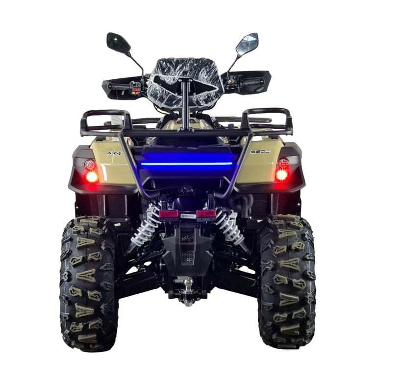 Теперь у него есть полноценное место, ведь сидение сделали двухъярусным. Для пассажира предусмотрены надежные прорезиненные ручки и удобная спинка, а для ног-площадки с антискользящим покрытием. Передний багажник Linhai-Yamaha M550L выдерживает 80 кг веса. На него можно установить кофр, подставку под ружье или прикрепить груз.