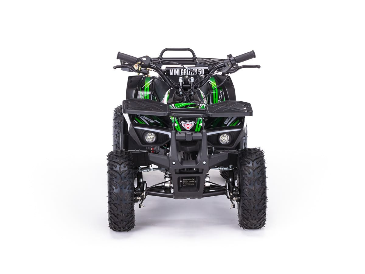 ATV MOTAX GRIZLIK Х16 ES (с электростартером) — детский квадроцикл в классическом утилитарном дизайне. Расшифровка обозначений: ES - электрический стартер, BW - увеличенные колёса. Этот квадроцикл оборудован 6-дюймовыми увеличенными колёсами и шинами с внедорожным протектором. Отлично подойдёт для детей от 3 до 8 лет. Квадроцикл оборудован компактным, двухтактным бензиновым двигателем объёмом 50 куб. см. в паре с фрикционным сцеплением центробежного типа. Это обеспечивает простоту и надежность конструкции. Квадроцикл имеет хорошую базовую комплектацию: он оборудован электрическим стартером, пультом дистанционного глушения и запуска двигателя, механическим ограничителем скорости, кнопкой быстрой остановки двигателя, яркими передними светодиодными фарами с режимом ближнего и дальнего света, раздвоенной системой выхлопа, механическим ручным стартером с механизмом легкого запуска. За счёт этого механизма существенно снижено усилие при запуске двигателя, с этой задачей может справиться и ребенок. Простота управления обусловлена фирменной передней подвеской полузависимого типа, которая позволяет сохранить стабильность в движении и лёгкость рулевого управления. Передние и задние механические дисковые тормоза способны эффективно остановить лёгкий и прочный квадроцикл. Детский квадроцикл оборудован передним и задним багажниками и прочным передним бампером. Эта модель отлично подойдёт как для получения первого опыта вождения, так и для активной езды по дачным дорожкам и лесопарковым зонам. Квадроцикл будет радовать ребенка круглый год! Он легко преодолевает небольшие препятствия, заезжает в горку, на бордюр. Ему не страшны лужи, грязь и песок. Комплект запчастей MOTAX GRIZLIK Х16 (ES, BW)