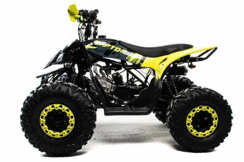 Обновленный Motoland Raptor 125 - cтильный, современный , универсальный квадроцикл подойдет вашему ребенку,как мальчику ,так и девочке. Его утилитарный дизайн разработан с учетом вкусов современного поколения и понравится всем без исключения. Диодная оптика , электростартер и чика безопасности , обновленная томозная система, металлический передний бампер защищающий пластик от внешних механических повреждений , новые противоскользящие ручки руля , подножки водителя оснащены ловушкой ног , Габаритные размеры : 1600х1000х930, клиренс 210 мм, высота до седла 650 мм. Данный квадроцикл комплектуется двигателем 154 FMI , ножной переключатель скоростей с автоматической круговой коробкой передач с реверсом, который установлен на усиленной раме, что дает уверенность в прочности конструкции . Его 8 –дюймовые колеса оборудованы универсальной резиной класса Hard Pack с V-образным поперечным рисунком, что позволяет с легкостью преодолевать все преграды в виде грязи, песка , луж и кочек.