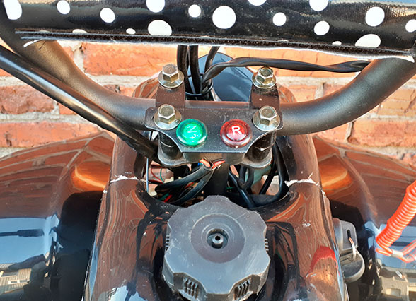 Одноцилиндровый двигатель способен разогнать до 60 км/ч, при этом безопасность обеспечивается ограничением скорости, родительским дистанционным пультом - с возможностью заглушить и завести квадрик на расстоянии до 50 метров, стальной рамой, закрытой платформой для ног, металлическим кенгурятником и ножным тормозом. Дисковый гидравлический ножной тормоз установлен задние колеса, для большего удобства установлен надежный амортизатор. Все это обеспечивает ребенку комфортабельную езду и безопасность при передвижении по любым дорогам.