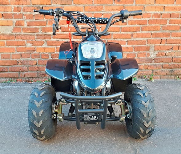 Одноцилиндровый двигатель способен разогнать до 60 км/ч, при этом безопасность обеспечивается ограничением скорости, родительским дистанционным пультом - с возможностью заглушить и завести квадрик на расстоянии до 50 метров, стальной рамой, закрытой платформой для ног, металлическим кенгурятником и ножным тормозом. Дисковый гидравлический ножной тормоз установлен задние колеса, для большего удобства установлен надежный амортизатор. Все это обеспечивает ребенку комфортабельную езду и безопасность при передвижении по любым дорогам.
