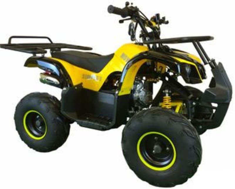 Подростковый квадроцикл модель ATV MOWGLI SIMPLE 7 с бензиновым четырехтактным двигателем – прекрасный подарок любому мальчику в возрасте 6-18 лет. Современный, яркий дизайн в утилитарном стиле, мощный двигатель с объемом в 125 куб. см., разнообразный родительский контроль – все это делает квадроцикл прекрасным решением для увлекательного и безопасного детского отдыха. Детский бензиновый квадроцикл идеально подходит для детей младшего возраста или подростков до 18 лет. Это стильная и яркая модель, которая поможет разнообразить досуг ребенка, дать ему первые и очень важные уроки поведения на дороге и управления транспортным средством. Модель отличается эргономикой и надежностью, для ограничения скорости используется специальное устройство. Это дает возможность установить скорость движения, которая соответствует возрасту ребенка и его умениям управлять квадроциклом. Для обеспечения безопасности также может использоваться пульт дистанционного управления, позволяющий быстро заглушить мотор при необходимости. Для аварийного отключения может использоваться специальная чека, которая крепится к одежде или поясу ребенка. Дополнительно модель оснащена удобным рычагом для переключения передач, двумя вместительными багажниками, яркими фарами и стоп-сигналом. Комплект запчастей ADLY 100