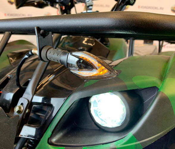 Квадроцикл отличается утилитарным стилем, для модели установлен надежный бензиновый двигатель с объемом 49 куб. см. Безопасность во время движения обеспечивает аварийная чека, дистанционный пульт для родительского контроля, защита от столкновений.