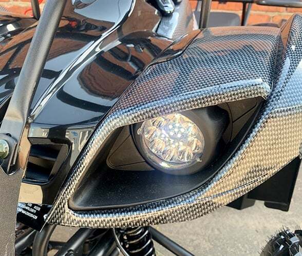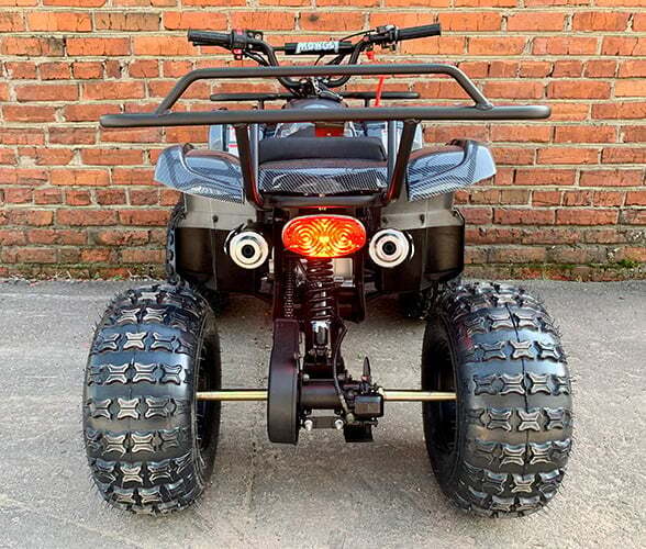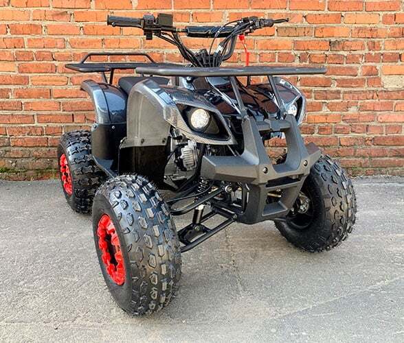 Квадроцикл оборудован мощным бензиновым четырехтактным двигателем на 49 кубических сантиметров, конструкция выдерживает нагрузку до 120 кг. Диаметр колес 8 дюймов, они идеально приспособлены для передвижения по грунтовым дорогам, песку или траве.