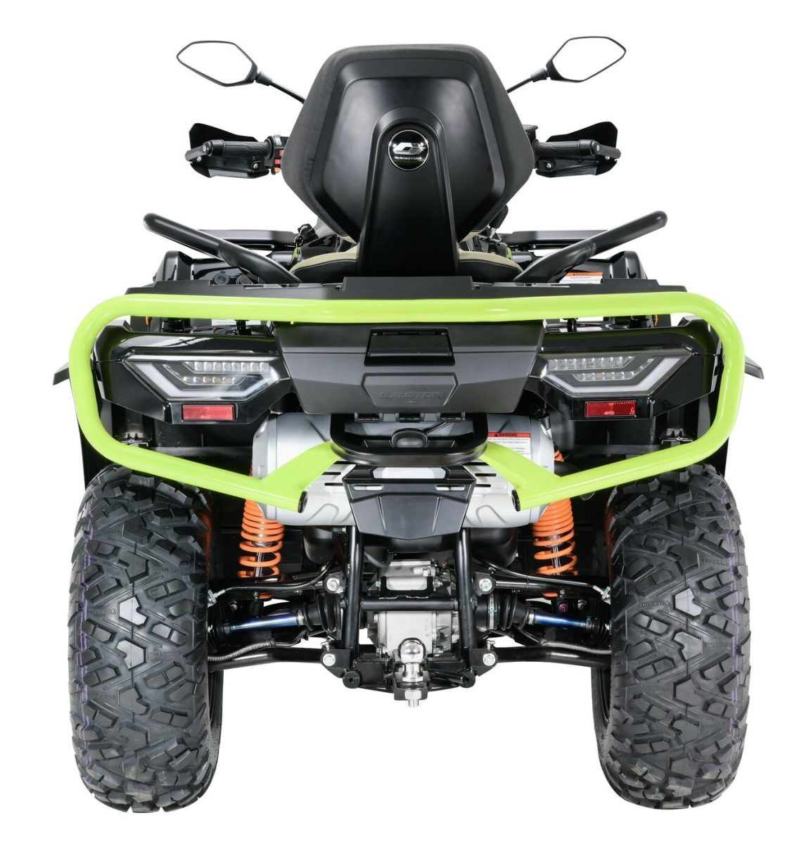 Лебёдка на 3500 LBS идёт в комплекте, она обеспечивает большие возможности на непроходимых дорогах. Пластиковые полиуретановые облицовки не только эффективно защищают пилота и пассажира от летящей с колес грязи, но и выдерживают механические воздействия — после небольших ударов пластик восстанавливает начальную форму, а не трескается. Спереди и сзади установлены объёмные багажные площадки.