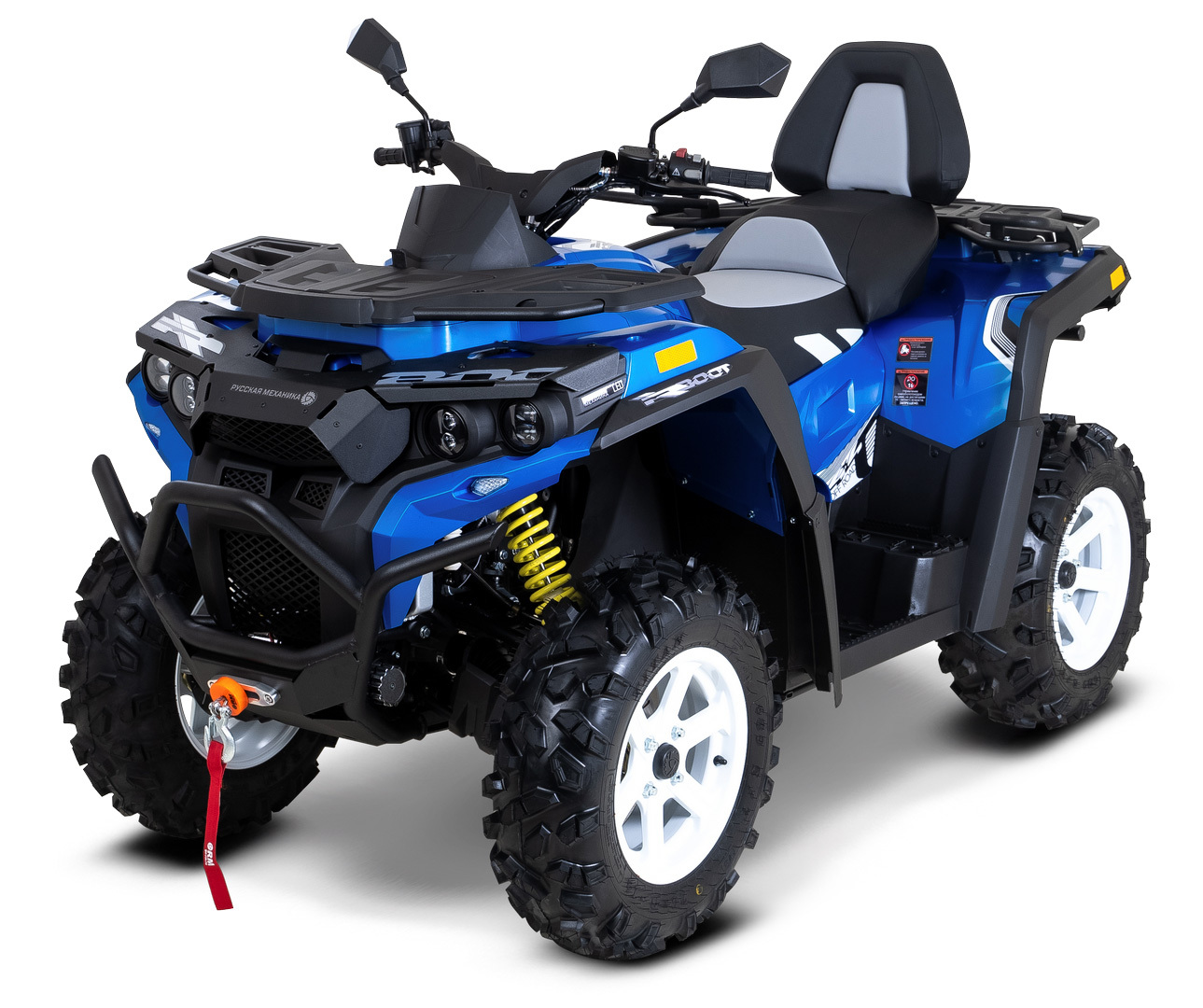 Новый спортивно-туристический полноприводный двухместный квадроцикл Русской механики рассчитан под эксплуатацию в сложных условиях внедорожных рельефов в формате динамичных скоростных ралли или длительных путешествий.