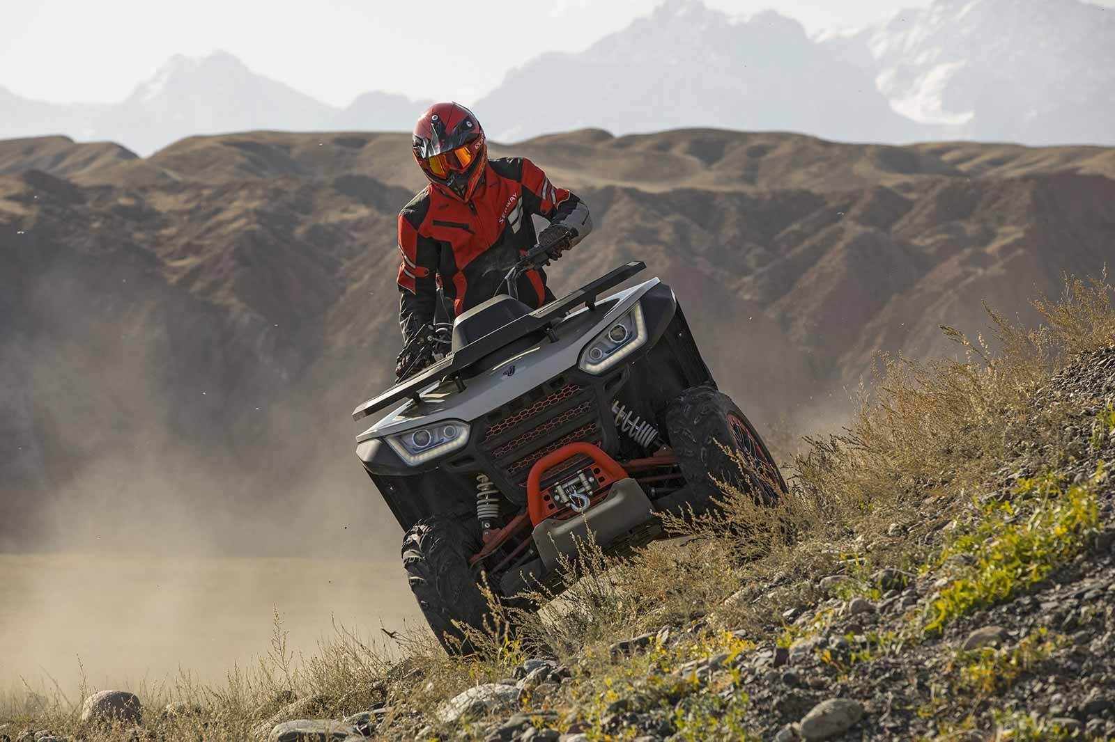 ATV оснащен 44-сильным 4-тактным мотором с объемом 570 см. куб. Система водного охлаждения имеет жидкостно-масляный теплообменник для ее эффективной работы. Комплектацию дополняет вариаторная трансмиссия CVTech, которая отличается производительностью и длительным сроком службы.