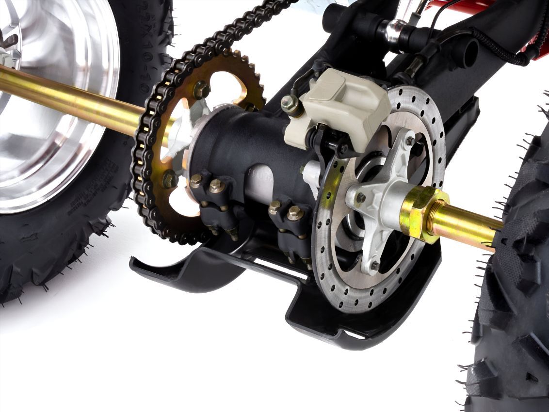 Благодаря усиленной цепи 520 X-Ring, которая передаёт мощность двигателя на заднюю ось, квадроцикл быстро набирает скорость, а передние двухпоршневые суппорты гарантируют надёжное торможение и безопасность водителя.