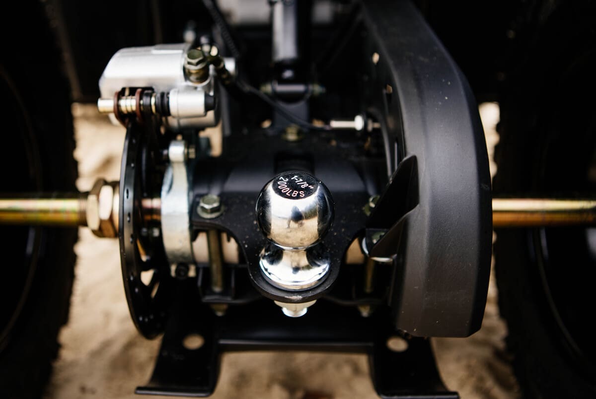 В передней части квадроцикл оснащён двухрычажной подвеской. Такой тип подвески увеличивает устойчивость и управляемость и в 2 раза уменьшает риск опрокидывания. Установлена усиленная цепь Х-RING 530 внутреннего типа смазки, благодаря которой можно забыть о постоянных обрывах цепи и уменьшить время обслуживания до обычной промывки водой.