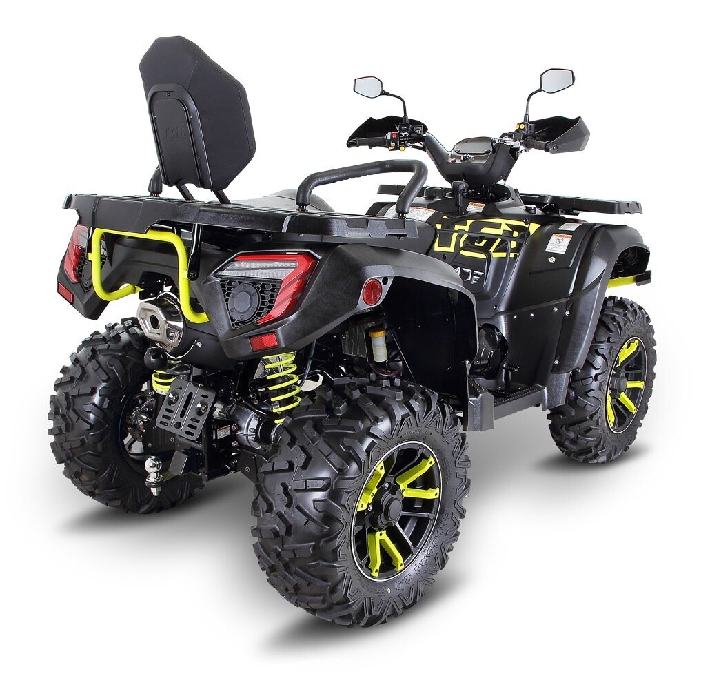 Blade 600 LTX EPS Premium подходит для любых задач и идеально проявляет себя на любой местности, а погрузка и перевозка грузов в повседневной работе или развлекательная поездка станет легкой и приятной. С мощным двигателем, современными полностью светодиодными фарами, высококачественным и прочным шасси, Blade 600 LTX EPS Premium станет вашим идеальным спутником на дороге и на пересеченной местности. Квадроцикл Blade 600 LTX EPS Premium специально сконструирован для двух гонщиков таким образом, чтобы пассажир был не просто "грузом", а мог полностью прочувствовать и пережить все ощущения пилота. Уверенный дизайн с современным светодиодными фарами и полностью светодиодным освещением, улучшенная автоматическая трансмиссия, удлиненная база, мощный двигатель, приятное управление и отличные драйвовые характеристики. Съемная решетка радиатора для легкой чистки. Blade 600 LTX EPS Premium во всём сможет оправдать Ваши ожидания. Цифровая приборная панель с задней подсветкой имеет следующие показатели: одометр, спидометр, счетчик пробега, обороты двигателя (RPM), положение передачи, уровень топлива, индикаторы высокой температуры и низкого заряда батареи, дальний свет, EFI checking, индикатор дифференциала, 2WD/4WD индикатор, индикатор электроусилителя руля (EPS)
