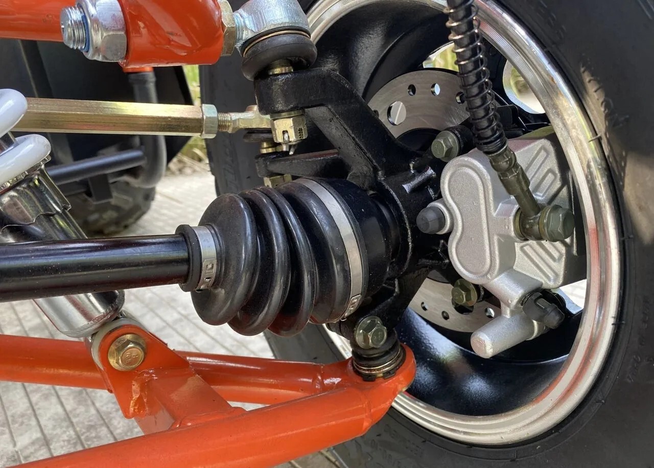 Высокопрочная пространственная рама изготовлена из хроммолибденового сплава AJ-1, что позволяет в 2 раза увеличить прочность конструкции, а также стойкость рамы к деформации, перегрузкам и коррозии. Увеличенное сечение рамы с узлами жёсткости позволяет нагрузить на квадроцикл до 250 кг.