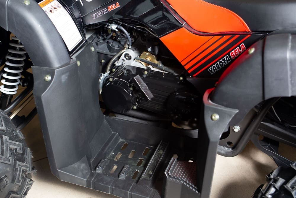 Квадроцикл Yacota 200 pro - надежный и мощный квадроцикл для активного отдыха на природе. Модель многоцелевая утилитарная - квадрик можно использовать не только в развлекательных и спортивных целях, но и в качестве помощника в хозяйстве. Стильный дизайн, прочная конструкция и комфортное сиденье делают квадроцикл Якота идеальным выбором для любителей экстремальных приключений! Двигатель Квадрик оснащен мощным 4-х тактным двигателем 17 л.с., объемом 200 кубов, который способен быстро вывести квадроцикл на максимальную скорость 75 км/ч, а также обеспечить достаточную производительность и динамичное управление. Технику можно использовать как в своих развлекательных целях, так и в роли помощника в хозяйстве. С объемом топливного бака в 5 литров квадроциклом можно беспрерывно пользоваться в течение 3-х часов. Вариатор В квадроциклах такая трансмиссия используется для автоматической регулировки скорости и обеспечения оптимального крутящего момента на разных участках маршрута. Благодаря вариатору квадроцикл может легко преодолевать различные препятствия и подстраиваться под изменяющиеся условия дороги, обеспечивая плавное и эффективное движение. Размеры Квадроцикл обладает компактными размерами. Длина 174 см, ширина 110 см и высота 116 см позволяют хранить технику в гараже рядом с основным транспортом, так как квадрик не занимает много места. Кроме того, обладает весом 180 кг. Это влияет на скорость и на маневренность квадрика, в чем вы сможете убедиться в болотистой и бездорожной местности. Комфорт Квадроцикл оснащен системой дистанционного управления, дисковыми гидравлическими тормозами, зеркалами заднего вида и световым оборудованием. В стандартной комплектации квадроцикла установлены расширители колесных арок, защита днища, металлический бампер с декоративной накладкой. А также в комплекте с квадроциклов удлиненное сиденье и большие широкие подножки, позволяющие водителю удобно разместиться на транспорте. Рассчитан на 1 человека, но также может увезти 2 человек. Грузоподъемность у квадроцикла 160 кг. Гарантия Мы уверены в качестве нашей продукции, поэтому предоставляем гарантию на эту модель квадроцикла на 1 год! Вы можете оставить заявку на нашем официальном сайте, и мы свяжемся с вами для подробной консультации. Доставка В нашем интернет-магазине вы можете оформить доставку в любой регион России - поставки от 3-х дней точно в срок. Комплект для сборки Yacota 200 pro