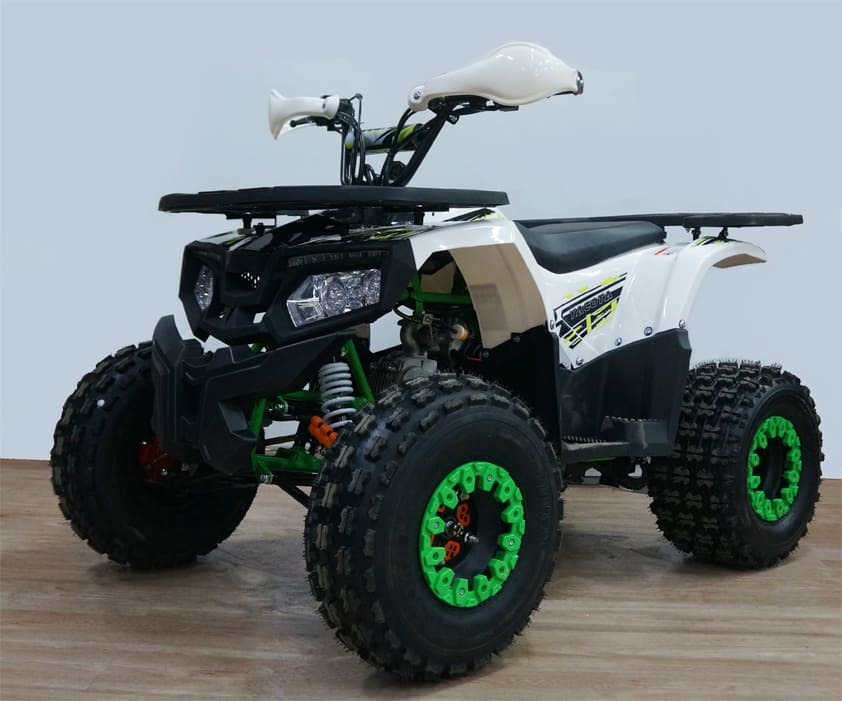 Квадрик оснащен мощным 4-х тактным двигателем 9 л.с., объемом 125 кубов, который способен быстро вывести квадроцикл на максимальную скорость 50 км/ч, а также обеспечить достаточную производительность и динамичное управление. С объемом топливного бака в 3,6 литров квадроциклом можно беспрерывно пользоваться в течение 1,5 часов.