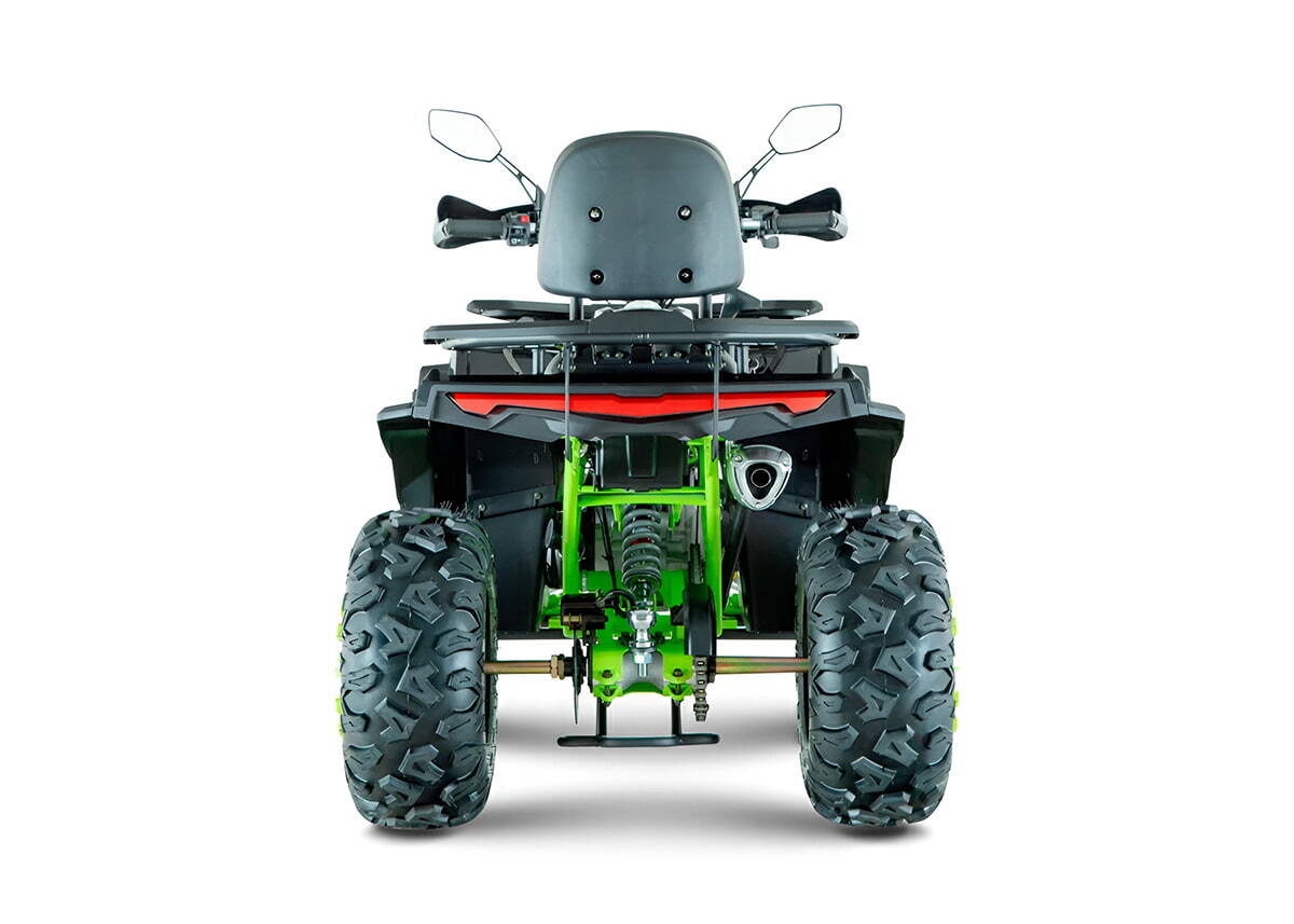 В основе квадроцикла лежит бензиновый одноцилиндровый четырехтактный двигатель объемом 200 куб. см, развивающий мощность 17 л. с. Этот мотор, оснащенный балансировочным валом, эффективно снижает вибрацию, обеспечивая плавную и комфортную езду по любым покрытиям. Благодаря вариатору, который делает управление квадроциклом интуитивно понятным и простым, вам будет удобно переключать передачи и уверенно двигаться по различным трассам.