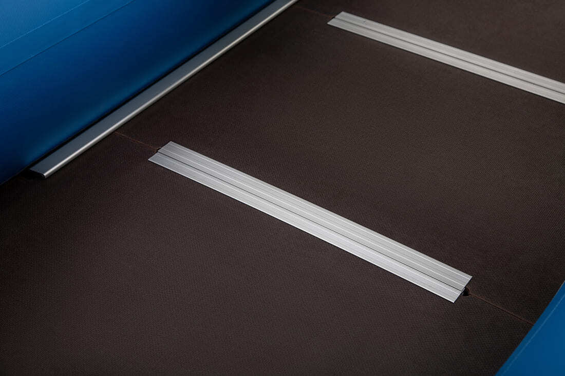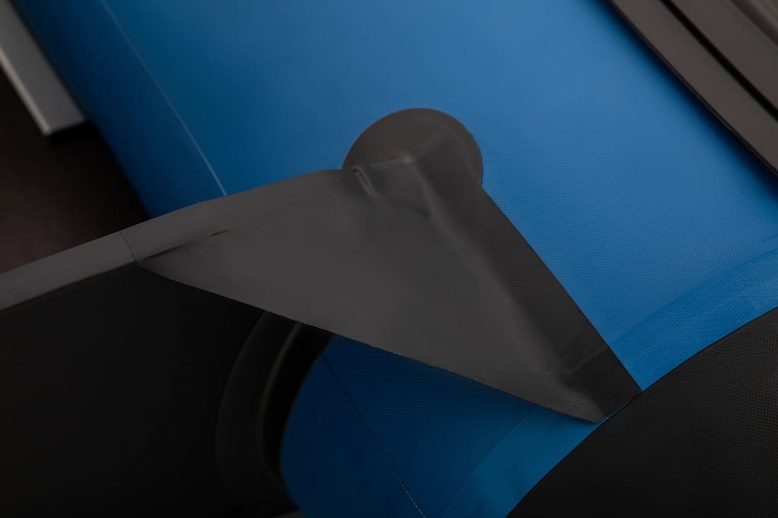 Матрица материала ПВХ выполнена из полиэстровых волокон, который отличается гораздо большей упругостью и меньшей истираемостью по сравнению с нейлоновыми. Это не только улучшает живучесть лодок, но и значительно повышает их мореходные характеристики, ввиду меньшей деформации и сопротивления