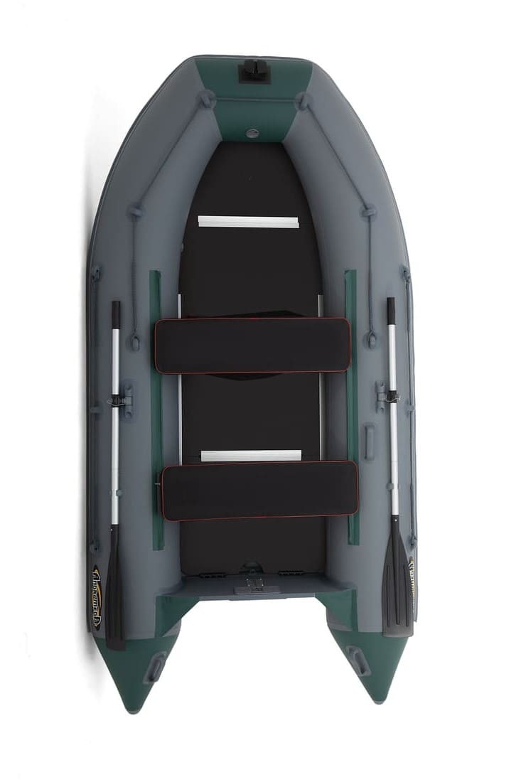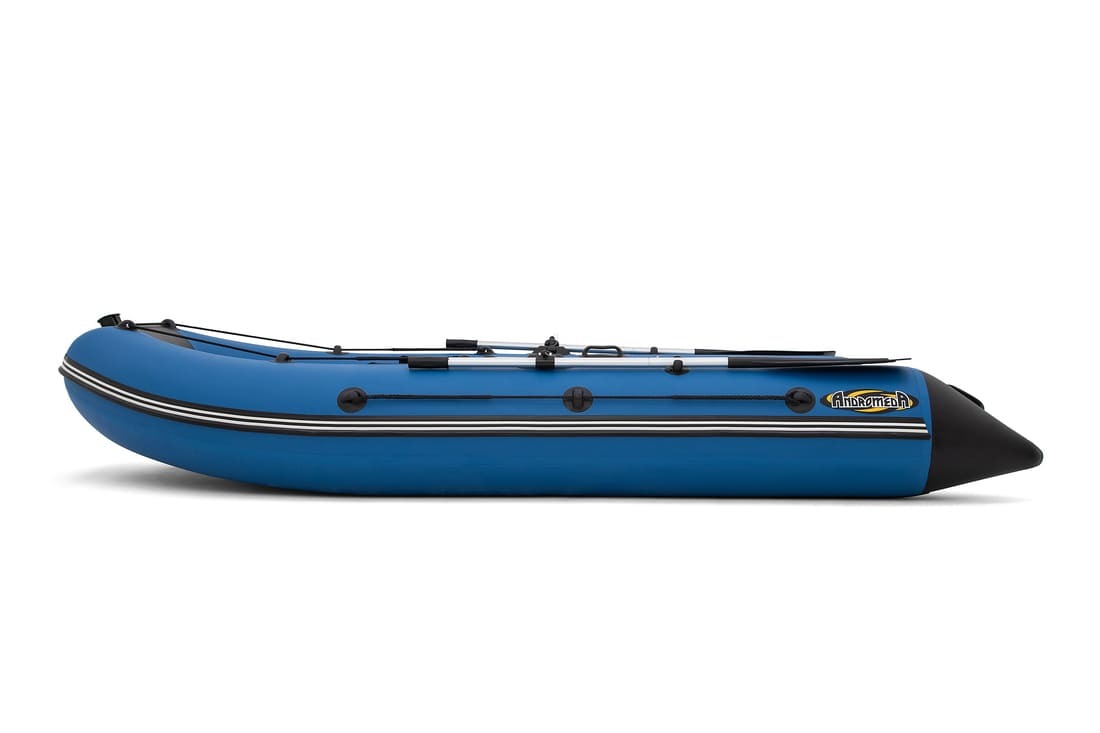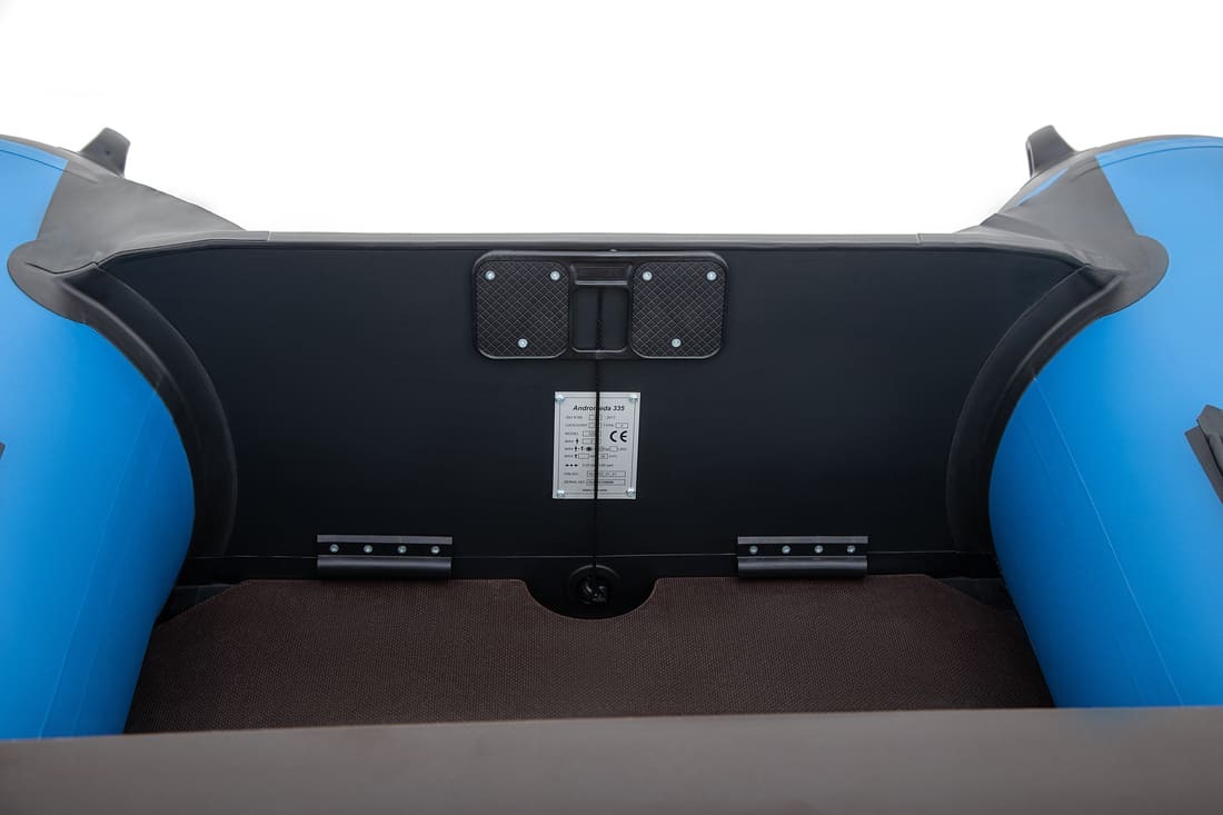 Надувная лодка «Андромеда» изготовлена из высокопрочной синтетической ткани с двусторонним полимерным покрытием ПВХ с добавлением термопластичного полиуретана. Применяемая ткань экологически безопасна, имеет высокие прочностные и климатические характеристики. Конструкция лодки исполнена в виде 3-х секционного надувного баллона.Для придания килевой формы днища конструкцией предусмотрен отдельный надувной баллон, улучшающий скоростные и мореходные характеристики лодки.