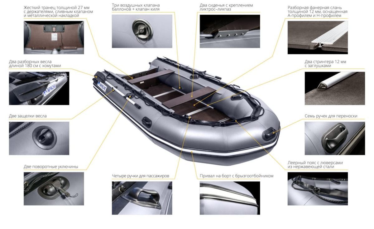 Моторная лодка Апачи 3700 СК самая большая и вместительная в модельном ряду Apache от уфимского завода "Мастер лодок". Отличается превосходной курсовой устойчивостью, легким выходом на глиссер. Установлено 11 ручек для Вашего удобства!