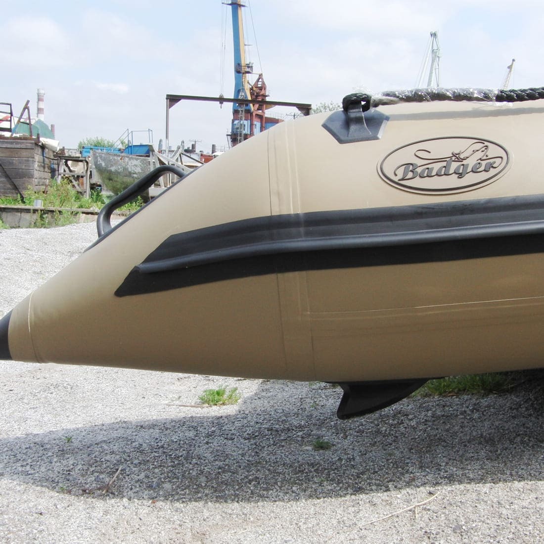 Надувная лодка Баджер обладает четко выраженной килеватостью, что придает судну высокую прочность. Это достигается благодаря использованию плотной ткани ПВХ с плотностью 1100 г на кв.м. на днище. Баллоны выполнены из многослойного материала на основе ПВХ с плотностью 1100 г/м2.