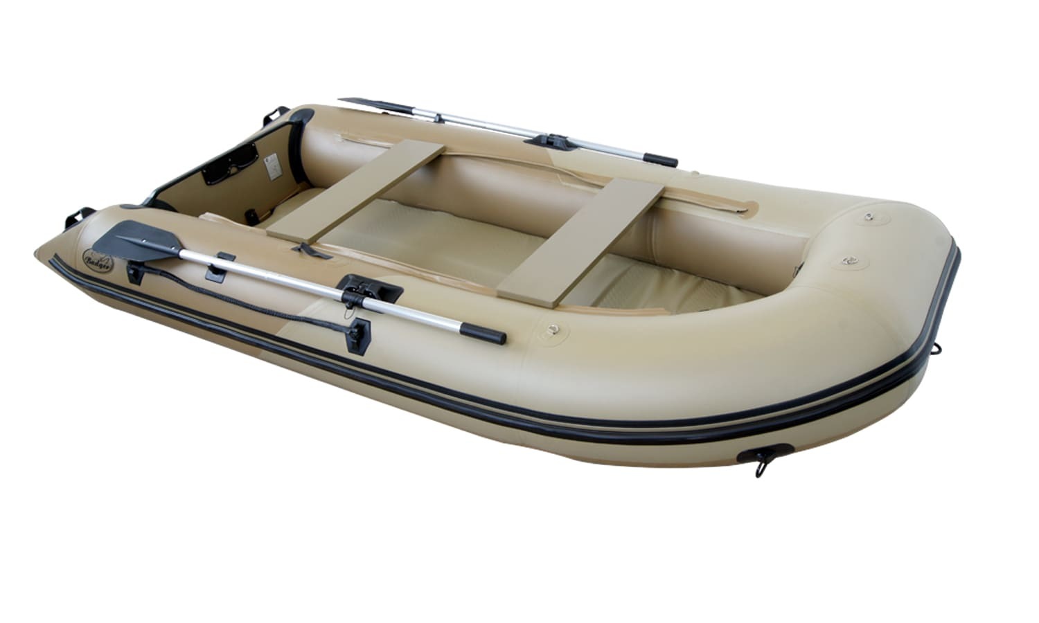 Надувная лодка Баджер обладает четко выраженной килеватостью, что придает судну высокую прочность. Это достигается благодаря использованию плотной ткани ПВХ с плотностью 1100 г на кв.м. на днище. Баллоны выполнены из многослойного материала на основе ПВХ с плотностью 1100 г/м2.