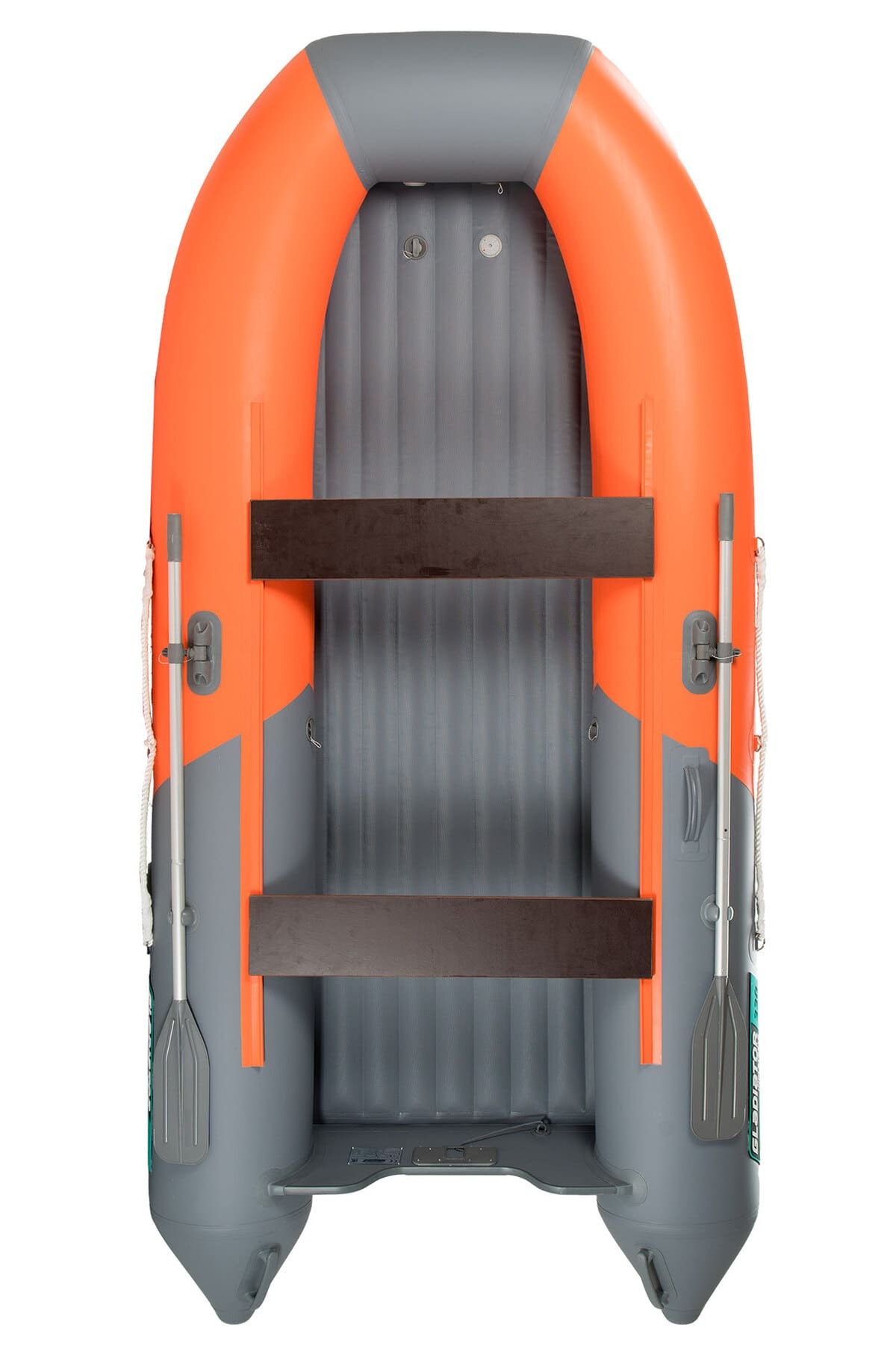 Надувная моторно-гребная лодка с надувным дном низкого давления (НДНД) из cерии AIR. Компактная и легкая надувная лодка, упаковывается в одну сумку и помещается в багажнике любого автомобиля. Для лодок подобной конструкции не существует проблемы утомительной сборки – разборки: необходимо просто накачать лодку. Все наиболее уязвимые места нижней части дна лодки - киль, выносные окончания баллона, транец - усилены дополнительной лентой из ПВХ (броней). Палуба лодки имеет жесткую и нескользкую поверхность – пол лодки в кокпите защищен противоскользящим покрытием. Легкость и надежность конструкции, оптимальная стандартная комплектация, привлекательный внешний вид – качественные отличия надувной лодки Гладиатор серии Air.