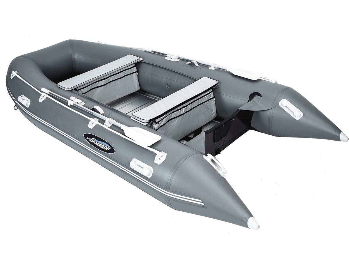 Для максимально безопасного использования лодки Гладиатор HD 350 AL (GLADIATOR HD 350 AL) в жаркую погоду предусмотрен клапан сброса избыточного давления, позволяющий легко стравить излишек воздуха, для удобства транспортировки – буксировочные ручки по баллонам и корме, а для безопасности нахождения в кокпите – пассажирские ручки и леерная веревка